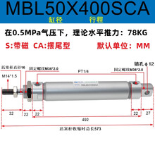 铝合金迷你气缸MBL20/25/32/40/50/63*100*125*150*175SCA气动小型 MBL50*400SCA