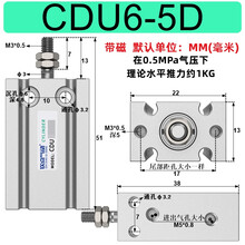 气动小型气缸CDU/CU10/16/20/25/32*10*20*30*5*40多位置自由安装 CDU6-5D【带磁】
