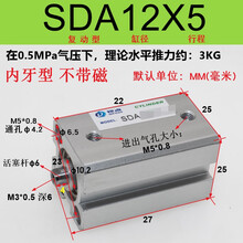 小型超薄薄型气缸SDA10/12/16/20/25/32/40/50/63/80*50S方形超薄 SDA12*5