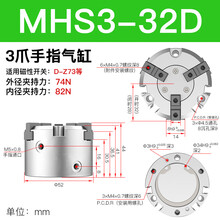 气动手指气缸MHS3/2/4-16-125-32-40-50-63-80D三爪四爪气爪气动机械手夹具 MHS3-32D 三爪